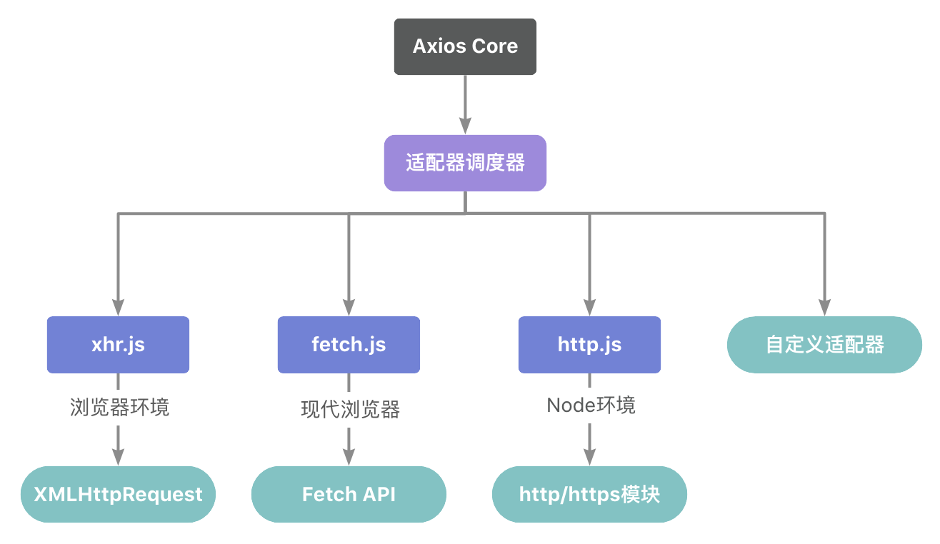 Axios适配器系统采用分层设计,主要特点包括: