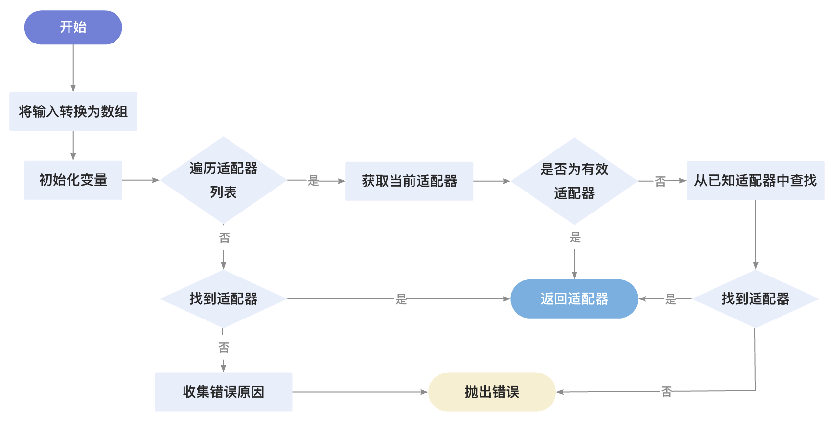 }adapters.js 的设计目标是提供一个统一的接口来管理和获取不同的适配器。它将所有已知的适配器存储在 knownAdapters 对象中,并通过 getAdapter 方法根据传入的适配器名称或实例来获取合适的适配器。如果传入的适配器无效,会抛出相应的错误。