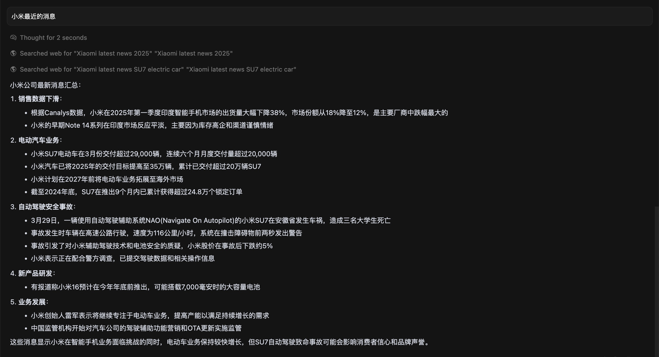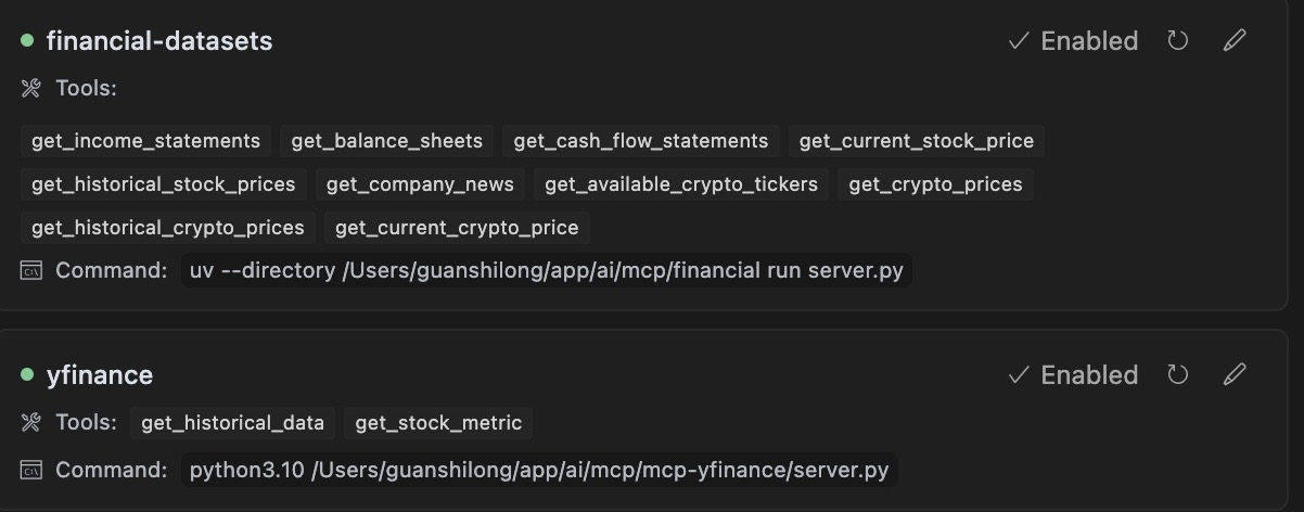 financial-datasets 和 mcp-yfinance 中的一些实时数据会有延迟,当时对于整合一些公司最新消息、分析历史数据还是挺不错的。