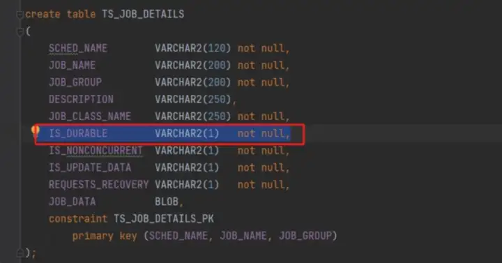 在将开源任务调度框架 Quartz 与 YashanDB 数据库集成时,执行如下写入语句时发生异常: