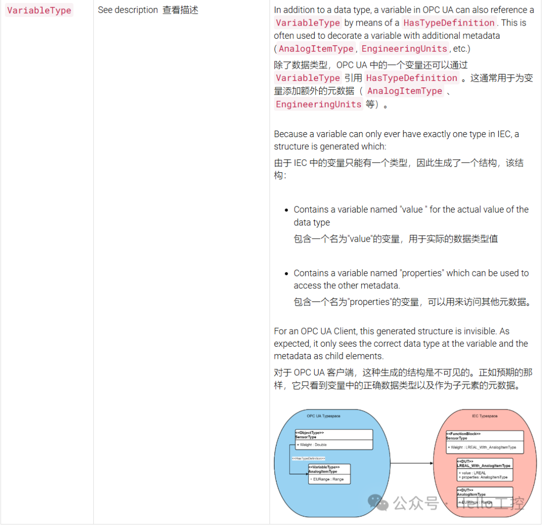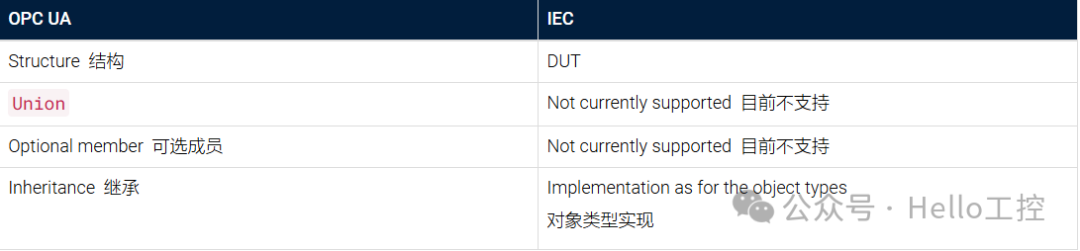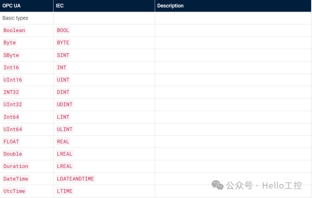 而PLC、PAC等程序中,数据类型基本遵循IEC的标准。例如,在基于IEC 61131-3标准的程序中,OPC UA的类型和IEC的类型变量在交互的时候,需要明白变量类型的对应关系,否则数据传输会失败或者没法对应上。