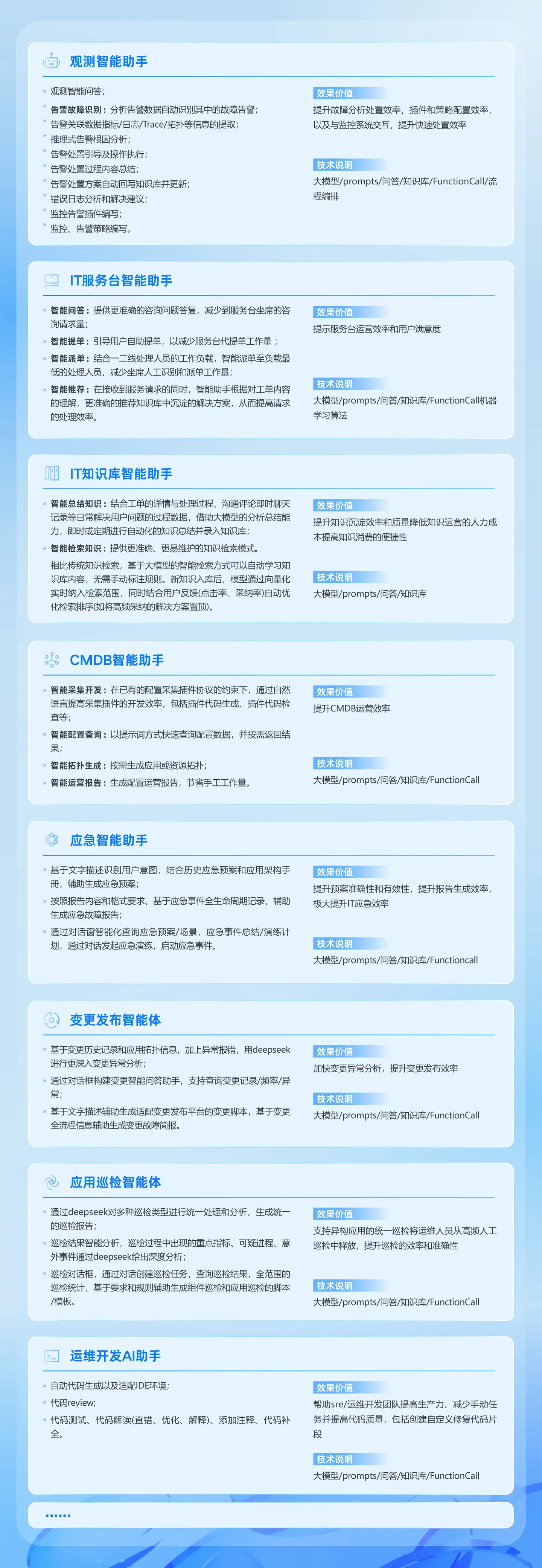 智能化运维(AIOps)通过引入大模型(LLM)和Agent技术,推动运维从“自动化”向“自主化”演进。其核心目标是通过AI代理自主完成故障诊断、资源调度、变更决策等任务,实现“零接触”运维。例如,字节跳动通过大模型Agent将故障自愈率提升至85%,人工干预时间减少70%。