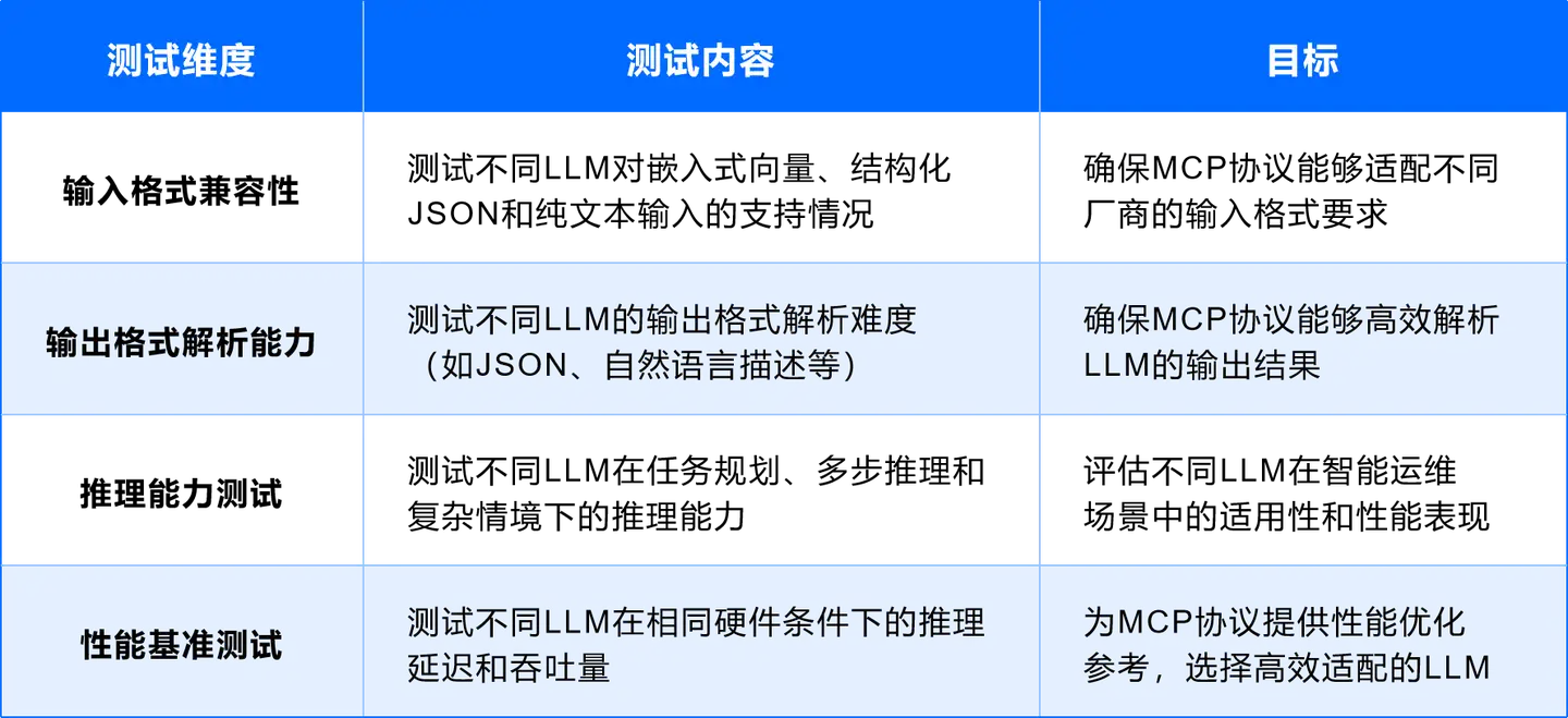 通过标准化测试套件,可以量化不同LLM对MCP协议的支持程度,为厂商开发和用户选择提供依据。