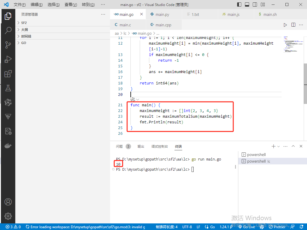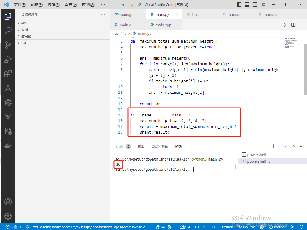 maximumHeight 数组按照从大到小的顺序排序。这一步的目的是优先处理较大的高度限制,为后续的塔分配更大的调整空间,从而最大化总和。-1。-1。package main