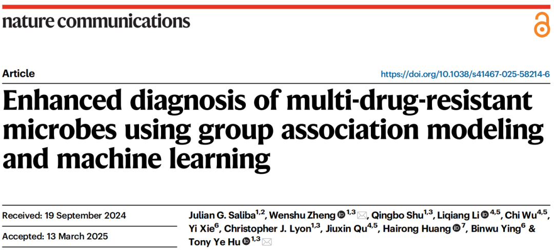 Saliba J G, Zheng W, Shu Q, et al. Enhanced diagnosis of multi-drug-resistant microbes using group association modeling and machine learning[J]. Nature Communications, 2025, 16(1): 2933.