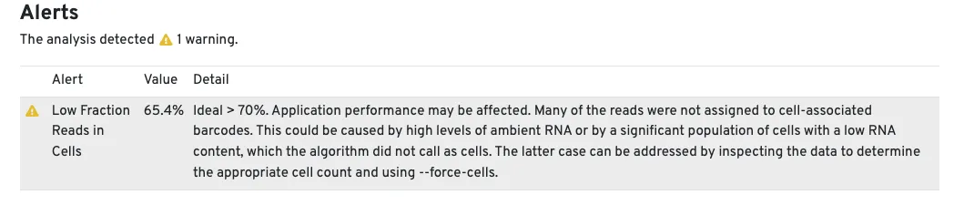 其中Low Fraction Reads in Cells的比率理想情况应该是>70%,但实际上如果数值没有相差很大还是会接着进行后续分析。