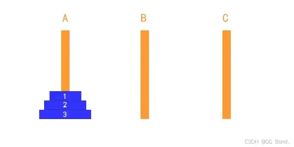 1.首先,何为汉诺塔问题? 简单来讲,汉诺塔问题是这样的! 给定三根柱子,记为 A,B,℃ ,其中 A 柱子上有几个盘子,从上到下编号为0到n-1,目上面的盘子一定比下面的盘子小。问:将 A 柱上的盘子经由 B 柱移动到 ℃ 柱最少需要多少次? 移动时应注意:① 一次只能移动一个盘子 ②大的盘子不能压在小盘子上