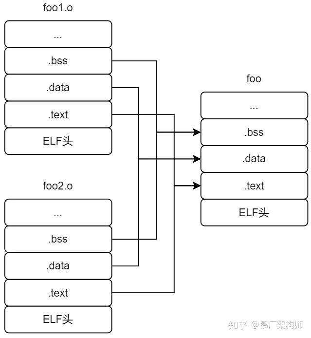 gcc -c foo1.s -o foo1.olinux下的目标文件为ELF格式,主要有三种类型: