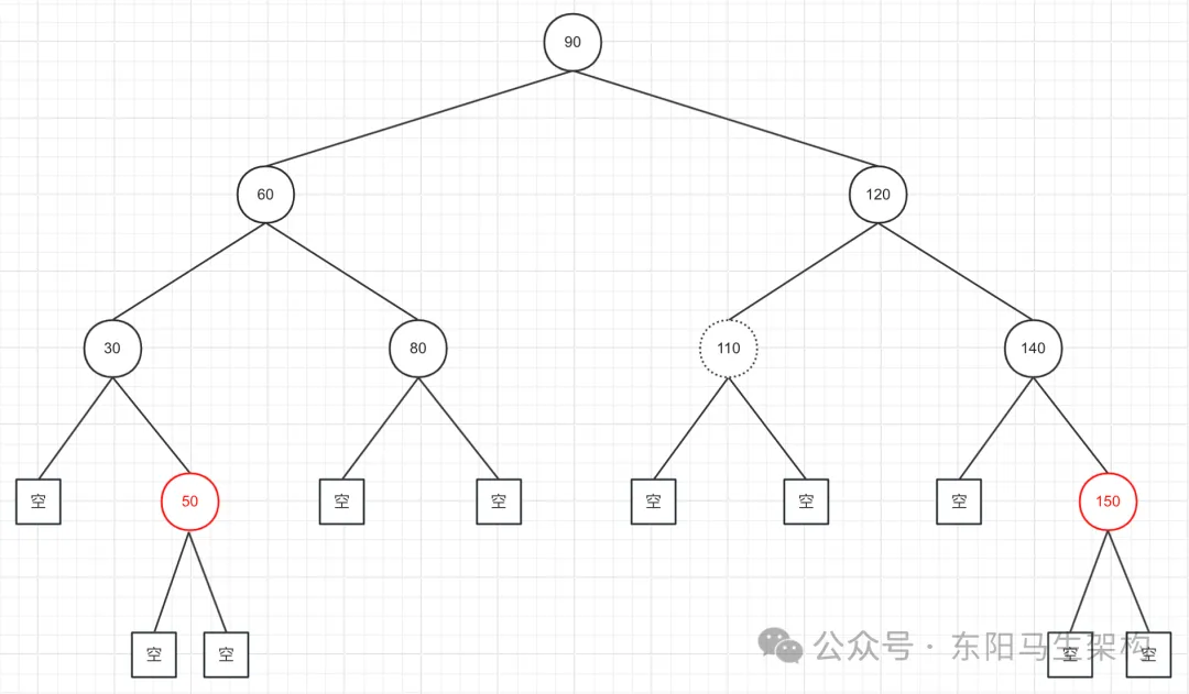 这种情况下其兄弟结点也肯定是黑色,因为要满足红黑树的性质五。如下图示,假设现在要删除的结点是150: