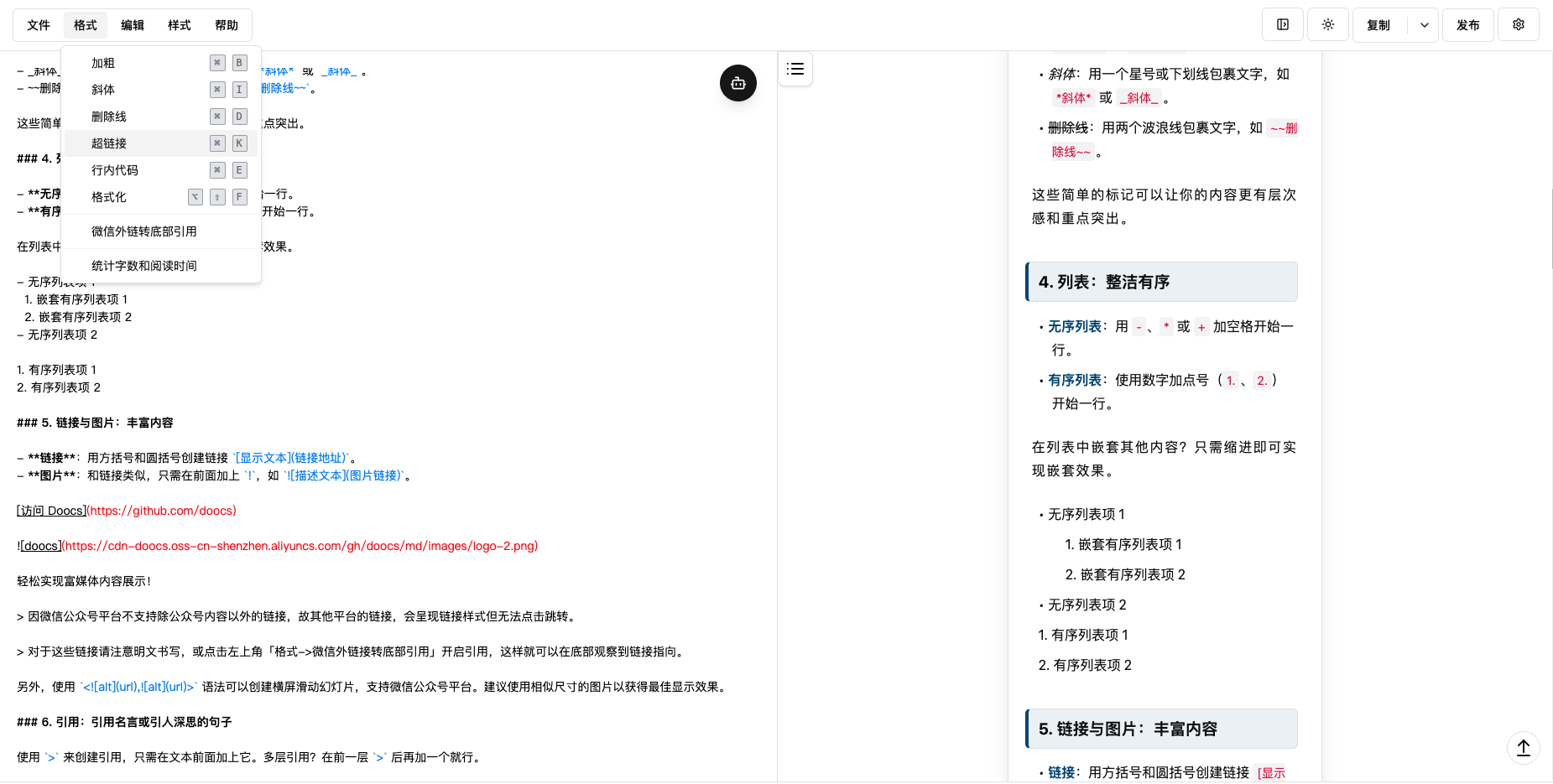 docker run -d -p 8080:80 doocs/md:latest功能 | doocs/md | MdNice | WeChat Format |
