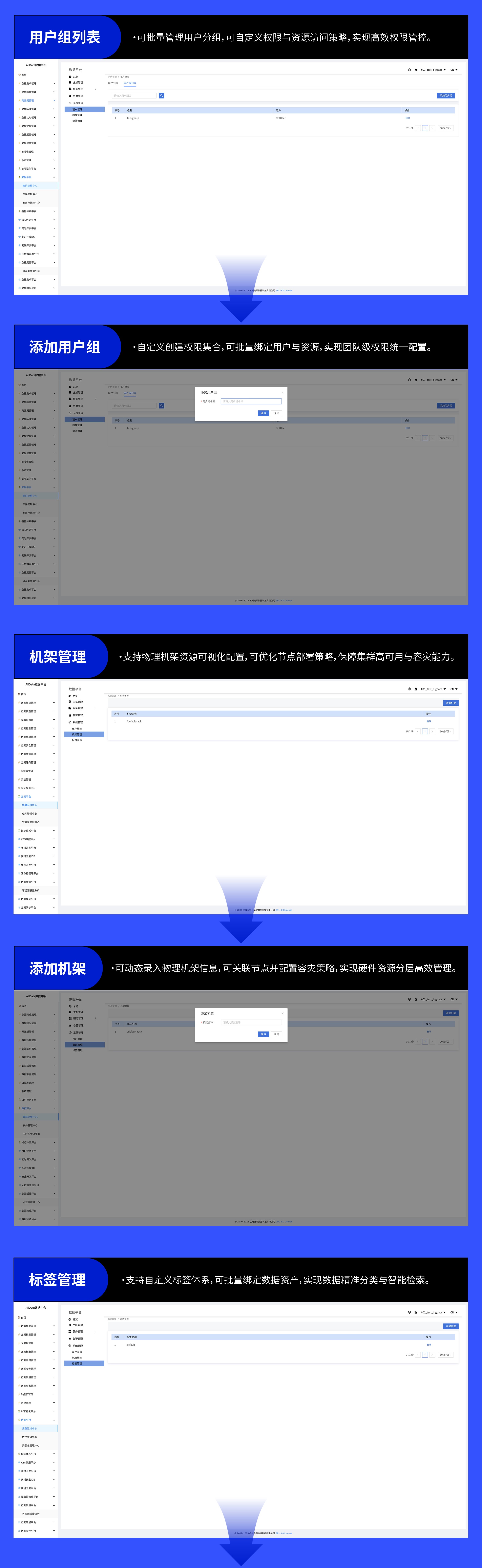 采用微前端和可插拔后端设计,支持根据业务需求灵活扩展功能模块。用户可通过配置方式集成或升级第三方组件,满足个性化需求,构建符合自身业务特点的大数据平台。