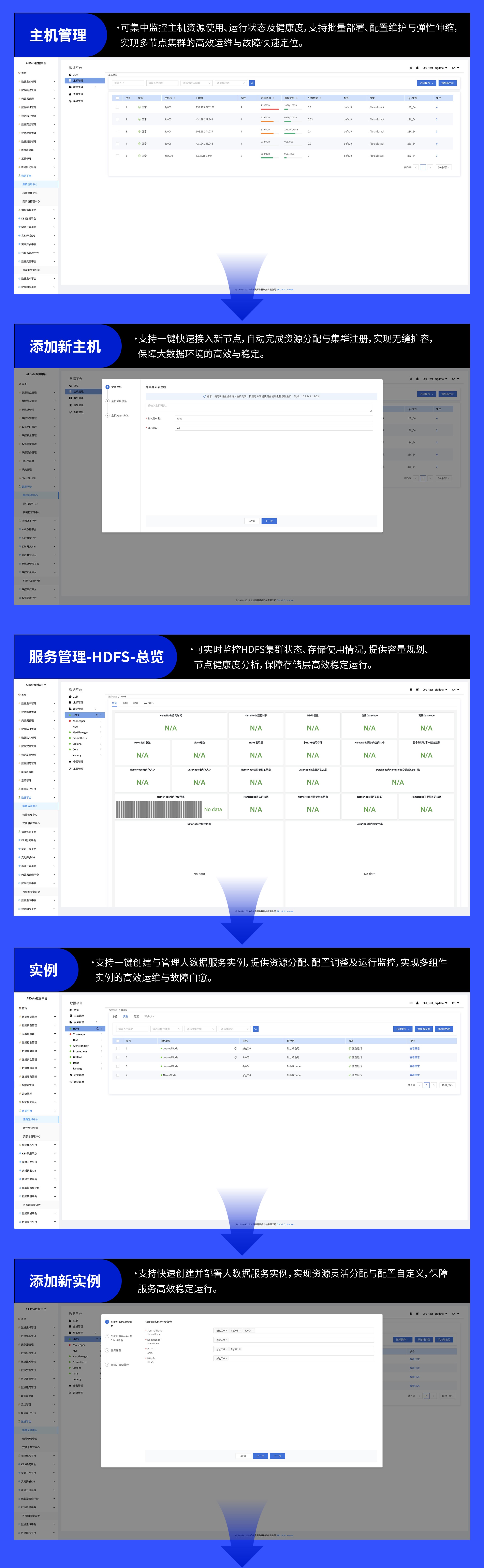 DataSophon支持300+节点的大规模大数据集群快速部署,适配复杂环境,能高效管理Hadoop、Spark、Flink等组件,实现组件的快速启停与资源动态调度,显著降低运维成本。