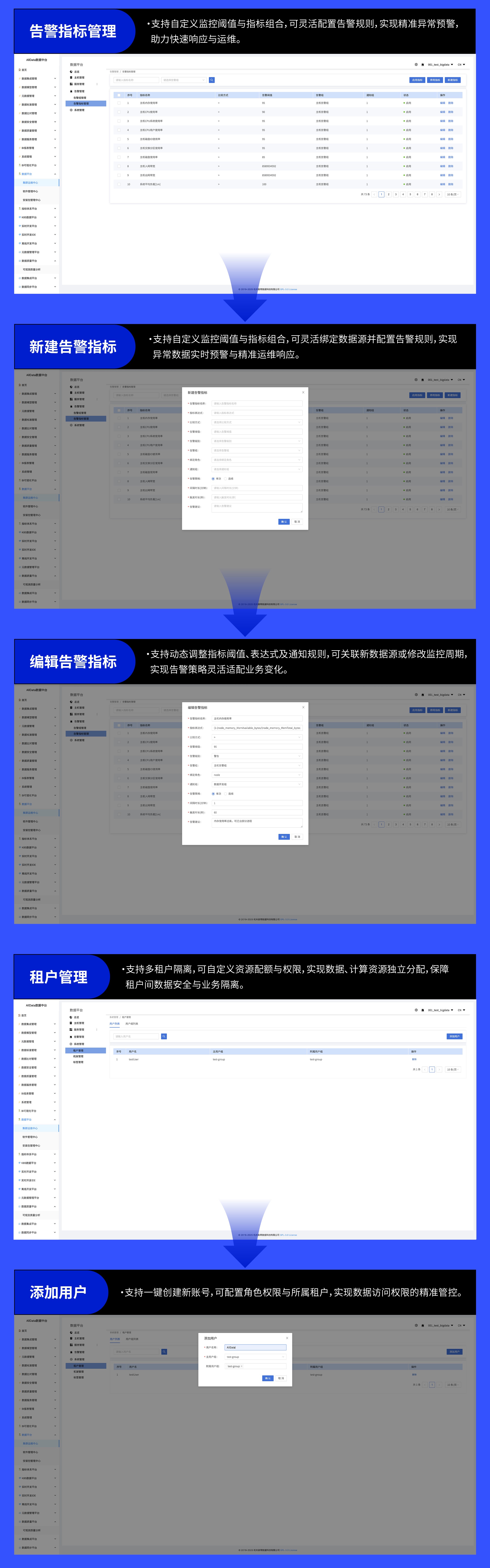 提供全链路监控指标,涵盖系统性能、资源利用率、数据质量等维度,并支持灵活的自定义告警规则。通过动态基线学习和智能阈值预测,减少误报率,实现故障分钟级定位与处置。