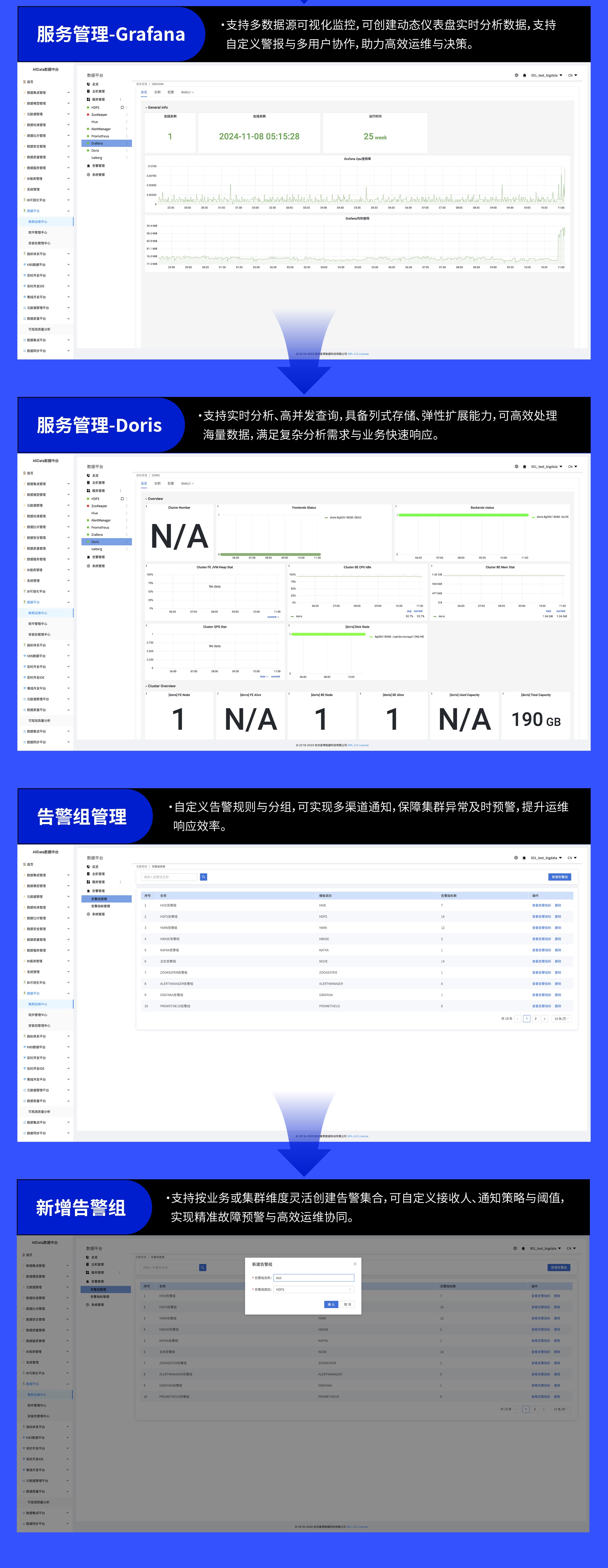 集成自动化运维脚本,支持一键扩容、故障隔离等操作,实现集群自愈。同时支持资源弹性伸缩,根据业务负载动态调整资源分配,确保集群高效稳定运行。