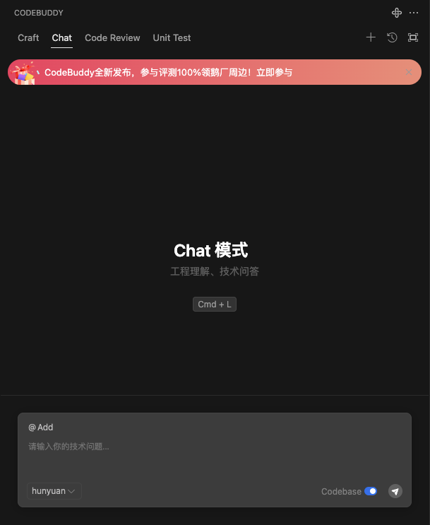 上周摸鱼时偶然发现了腾讯的AI编程提效工具 - CodeBuddy, 官方介绍为开发者提供开发智能体 Craft、智能代码补全、单元测试、代码诊断等多项高效功能,帮助开发者在编码过程中节省时间、提升效率。目前腾讯内部 85% 以上的开发者已使用 CodeBuddy,编码时间平均缩短 40% 以上,AI生成代码占比超四成,研发效率提升超 16%。于是我便怀着一颗好奇的心去试用。