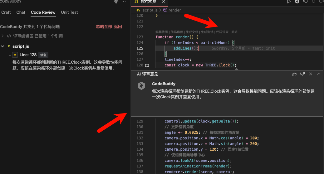 使用方式有俩种:点击方法上方的代码评审按钮或者框选一段代码并右击选择代码评审