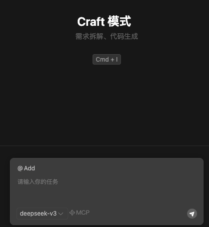 这个模式我是有点好奇的,并没有在其他AI编程软件看到过,据官网文档的介绍 Craft 的使用链接,“ 与 Chat 对话功能相比,跨文件上下文理解、批量代码生成与修改、智能代码优化与重构是 Craft 的核心功能,尤其是在生成代码工程中表现突出,能够显著提升开发者的效率 ”,我对他的初印象就是类似于Cursor的Agent模式,可以自主帮你修改代码并且支持调用三方MCP。
