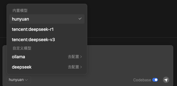左下角的模型选择也包括腾讯的hunyuan以及deepseek