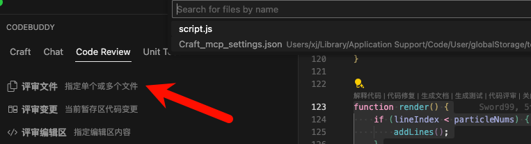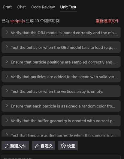 生成单元测试,使用方式类似于文件评审,可以框选右击/函数上方点击/自主选择文件,