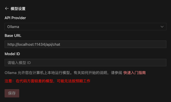 想测试本地部署的模型也可以选择ollama , 配置一下参数即可
