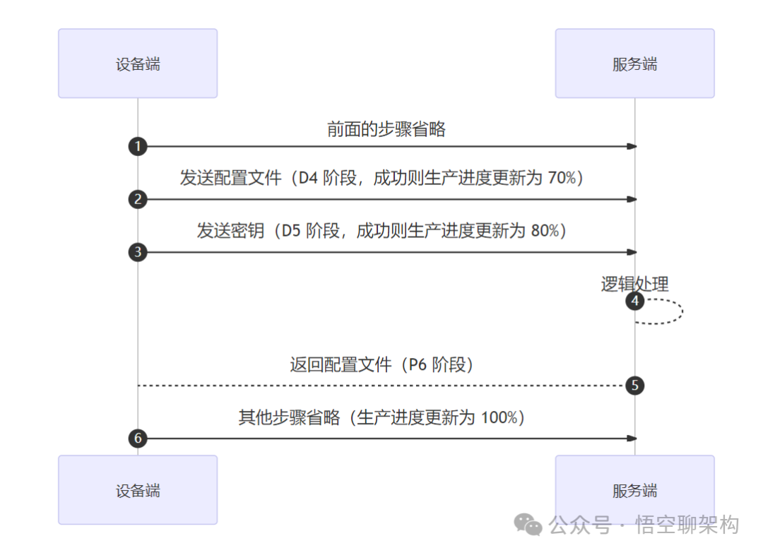 初步结论:设备端执行了 D5 阶段,服务端没有执行 P6 阶段,服务端有问题。