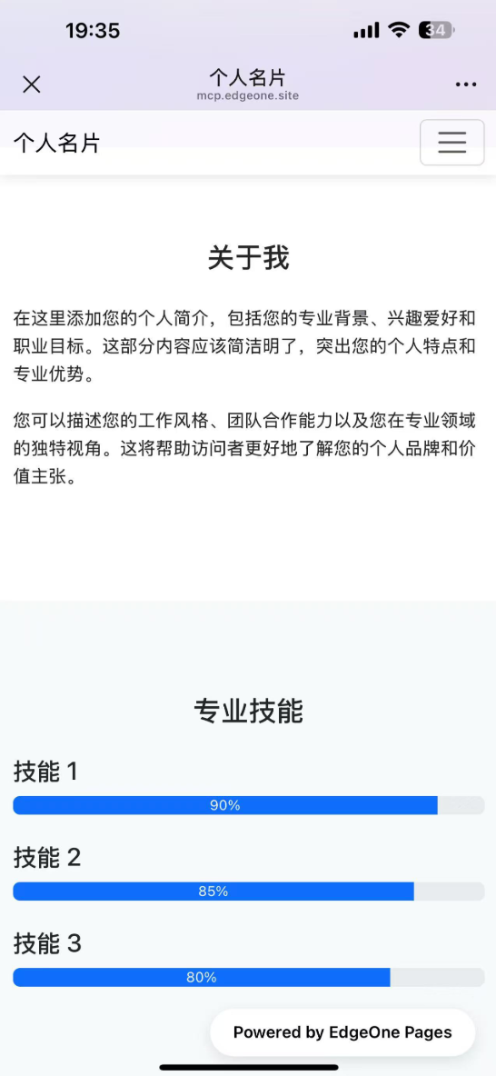 然后再调用 EdgeOne Pages MCP 服务部署到公网上,其他人就能访问了。