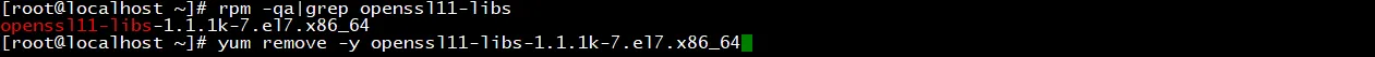 [root@localhost ~]# yum remove -y openssl11-libs-1.1.1k-7.el7.x86_64