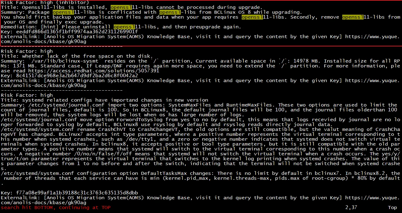 我们可以在 leapp-report.txt 文件中找到对应的解决方法