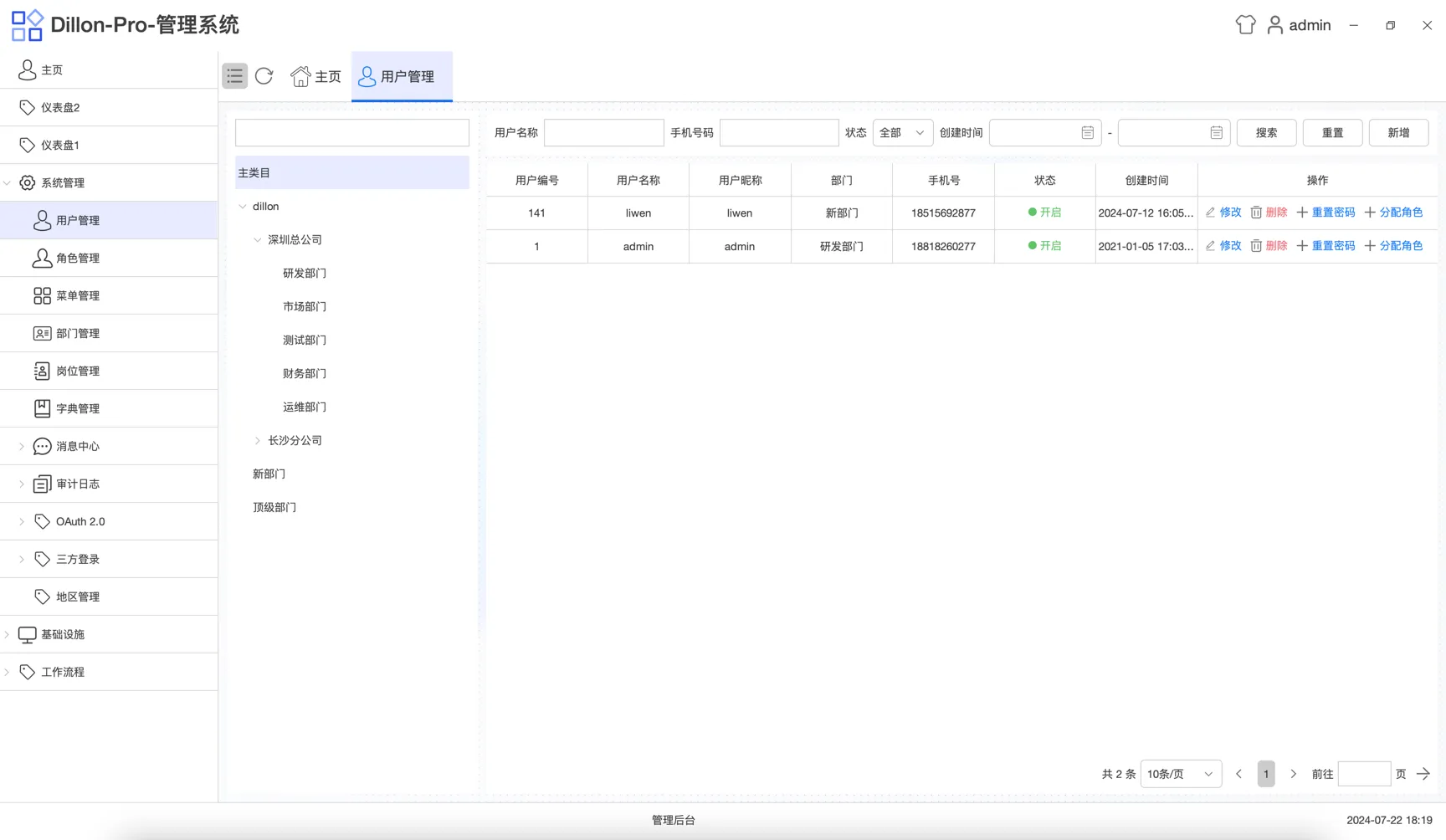 通过角色-权限-用户三级联动机制,实现从菜单权限到按钮操作的全链条控制。系统预置: