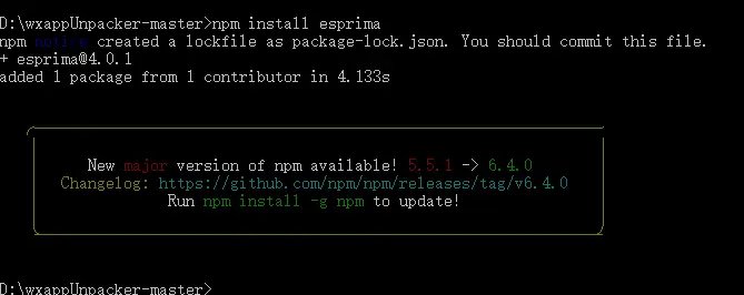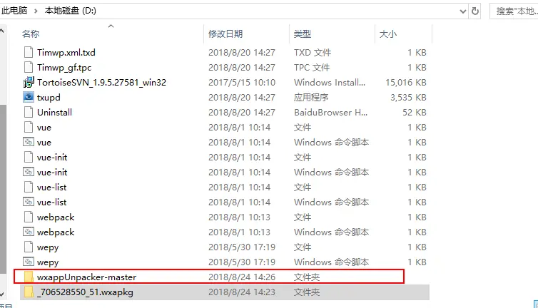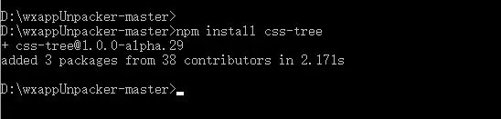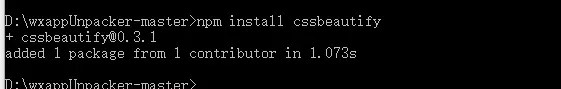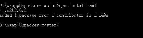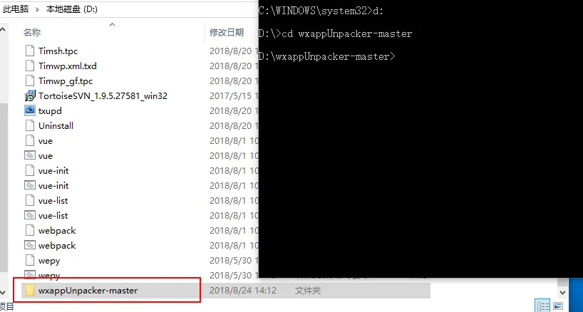cd 到下载好的反编译脚本目录下,我把文件放在了d盘里面,因此D:>cd wxappUnpacker-master