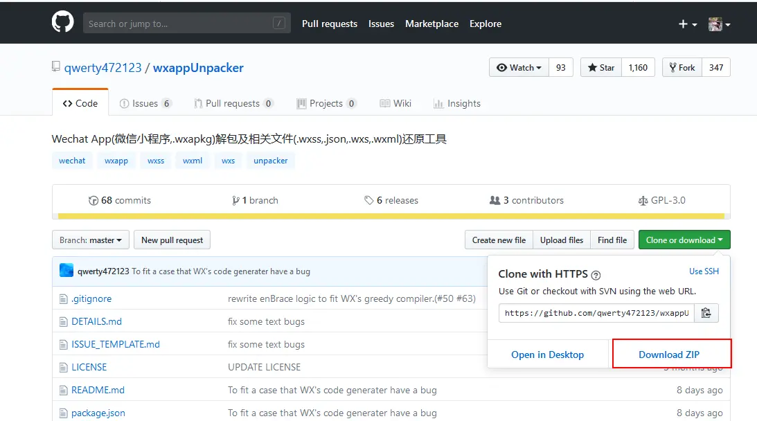下载地址:https://github.com/qwerty472123/wxappUnpacker 下载解压,完成之后放在D盘备用