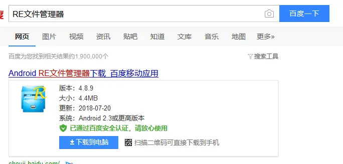 注意看图标,一定要下载这款带有r标识的,有些RE管理器和夜神模拟器有冲突,不能获取root权限