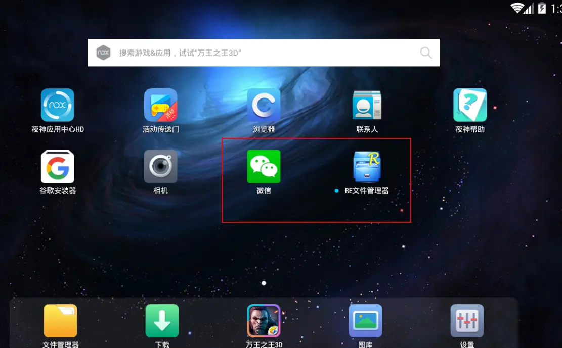 >模拟器微信中运行一下后,直接切回模拟器桌面运行RE文件管理器