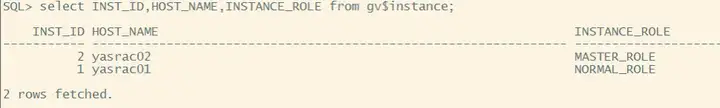 SELECT INST_ID, HOST_NAME, INSTANCE_ROLE FROM gv$instance;