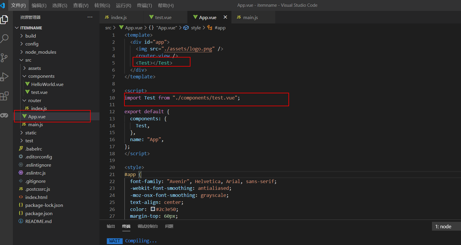 7:在components文件夹下面创建test.vue文件,复制一段elementUI官方文档的代码,进行测试