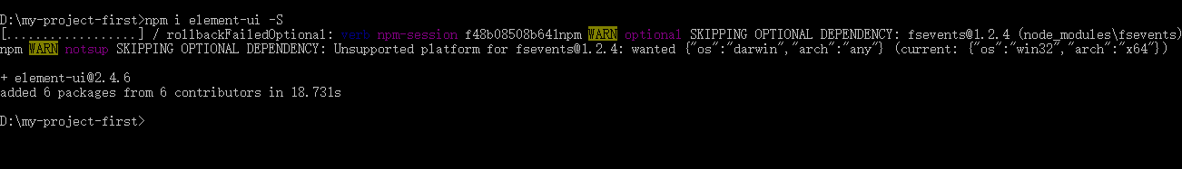 快捷键ctrl+c,终止批处理操 作吗(Y/N),在输入命令npm i element-ui -S