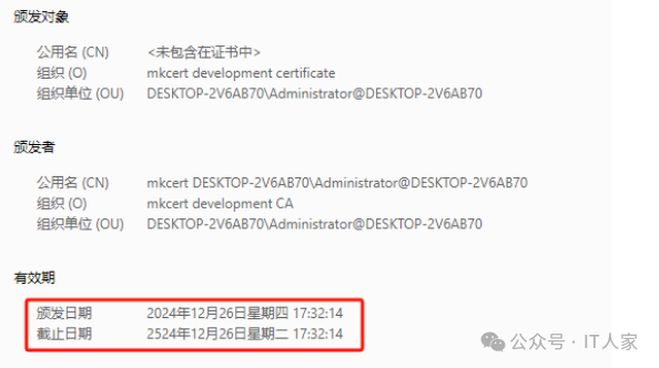 在弹出的窗口中找到mkcert的根证书,可双击打开查看根证书的相关信息