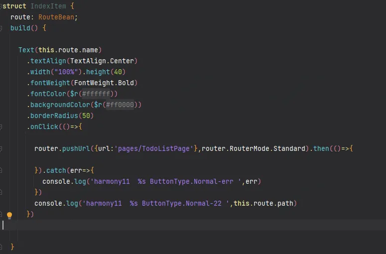 官方文档只给了一个路由跳转的API使用方法,我一看如此简单,立马照葫芦画瓢。下面是我的路由跳转代码截图: