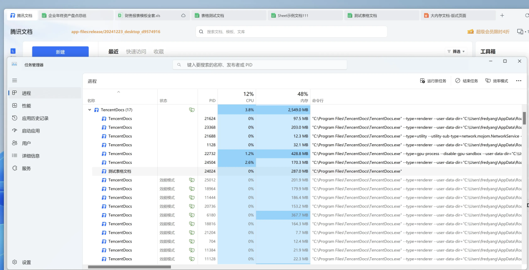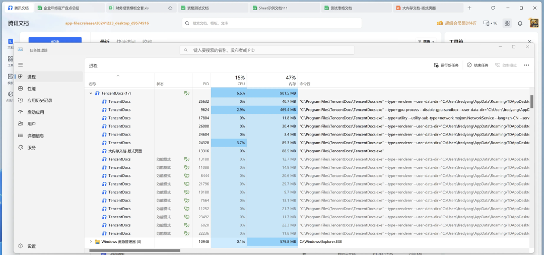 针对腾讯文档桌面端内存占用高的问题,桌面端采取了一系列快速有效的优化措施。