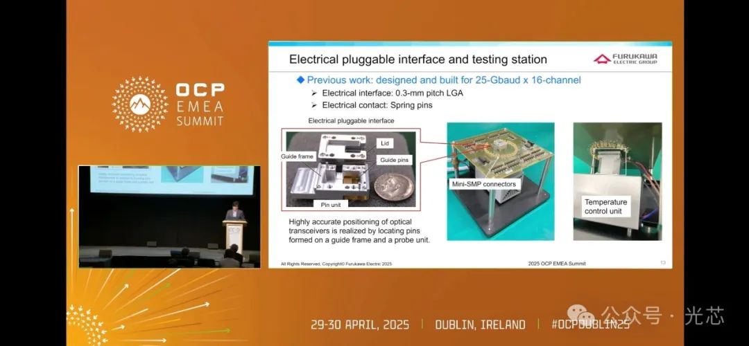 - 开发25Gbaud测试台,配备引导销定位系统(Spring pins)、mini-SMP电接口和温度控制单元,确保收发器与电接口精准对接。