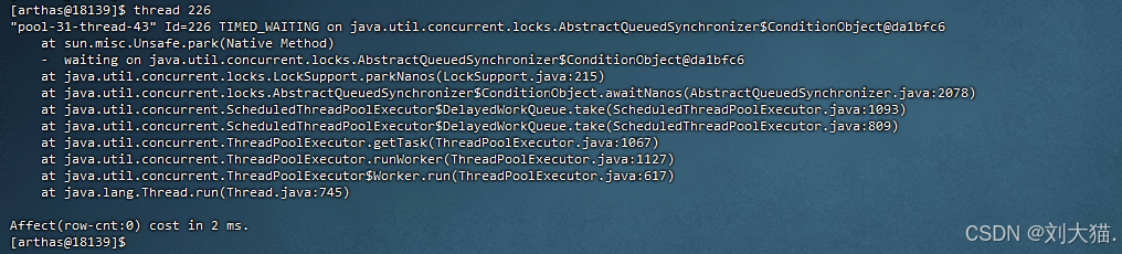 :线程在 java.util.concurrent.locks.AbstractQueuedSynchronizer$ConditionObject@da1bfc6 上等待某些条件。它通常用于调度任务或线程池中的任务等待执行。Affect(row-cnt:0) cost in 2 ms.