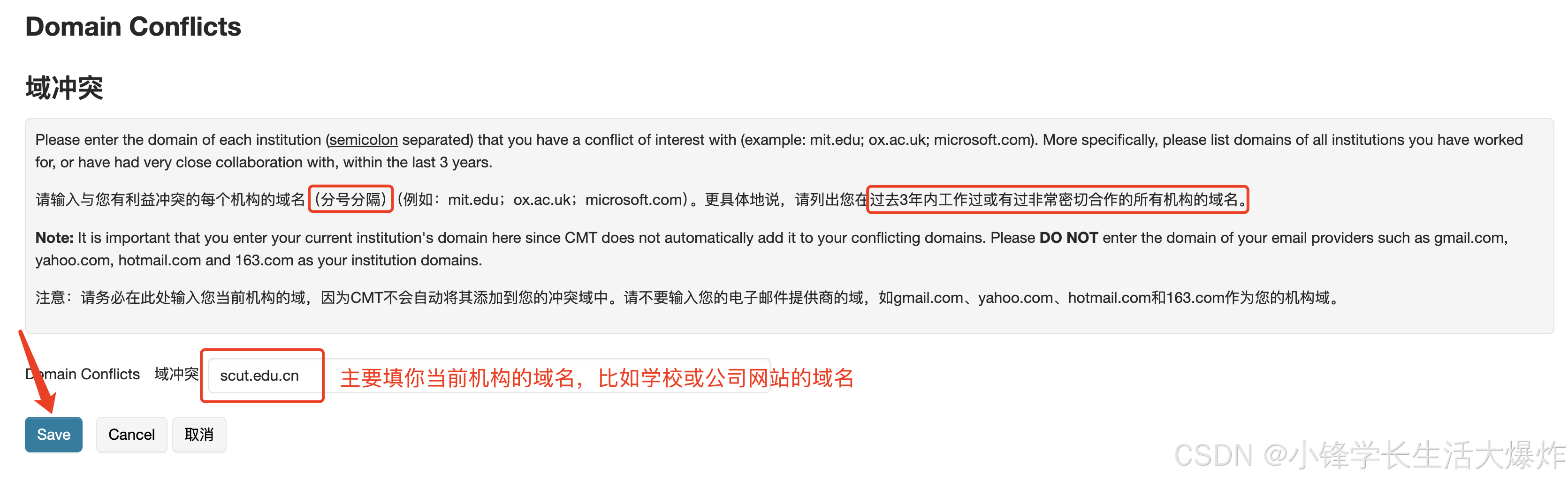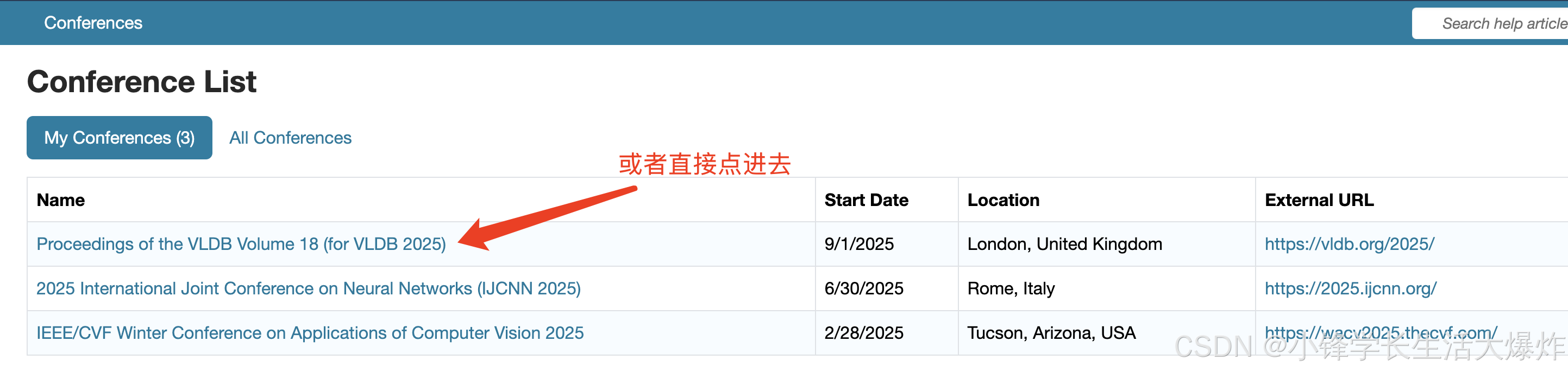 手动输入会议链接:https://cmt3.research.microsoft.com/PVLDBv19_2026/User/ConflictDomains 或者直接点击进入会议: