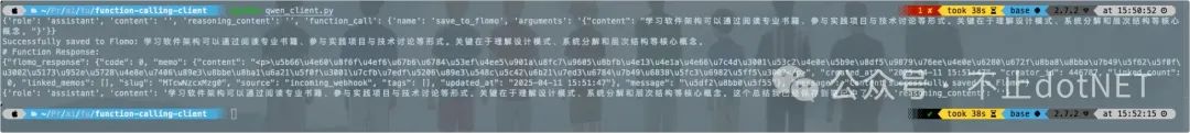 5、接着调用本地 ollama 运行的大模型来实现跟大模型对话,然后将对话结果保存到 flomo 。Client 端的 Program 完整代码如下: