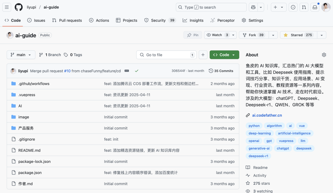 最后给大家分享鱼皮免费开源的 AI 知识库 ,汇总收集了最新最全的 AI 知识,帮助大家更好地适应 AI 时代的到来。里面除了各种教程资料外,也重点给大家分享了很多 AI 工具的具体应用场景,比如接入办公软件提升效率,帮你做自媒体,AI 批量制作视频等。希望对大家有帮助~
