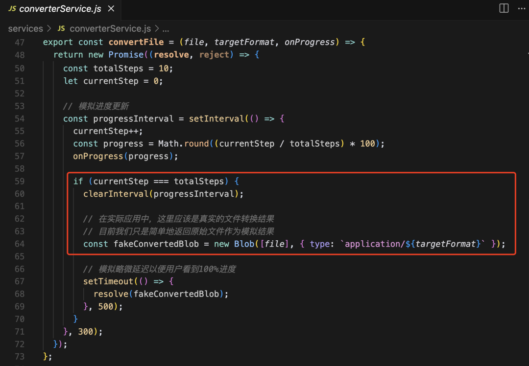 比较遗憾的是,所有模型生成的网站都只是有个“壳”,虽然输出了 “文件转换成功”,但实际上只是改了文件的后缀名而已,并没有真的转换格式。看下代码就知道了: