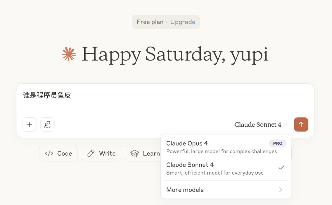 Claude 的使用非常简单,直接进入官网(claude.ai)就可以免费使用 Claude Sonnet 4 模型了:
