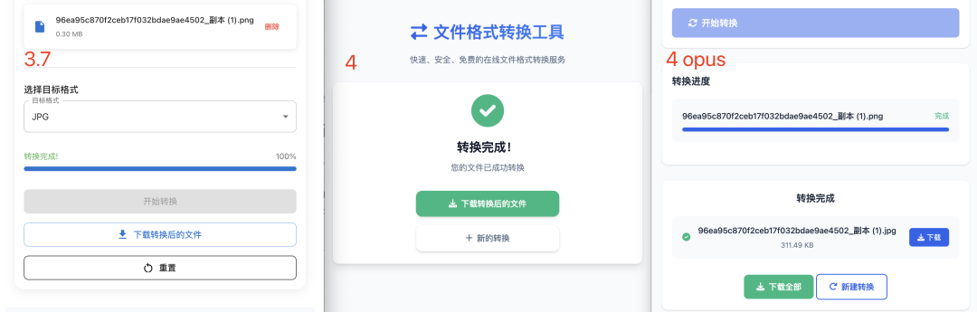 转换成功后,显然 claude-4-sonnet 和 claude-4-opus 的成功提示和下载按钮更明显,高下立判!