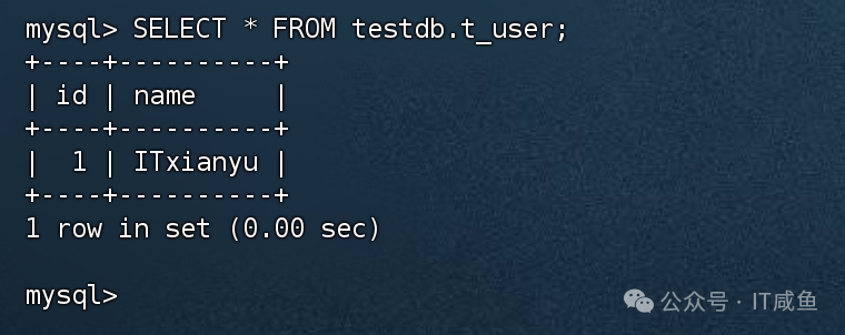 INSERTINTO t_user VALUES (1, 'ITxianyu');