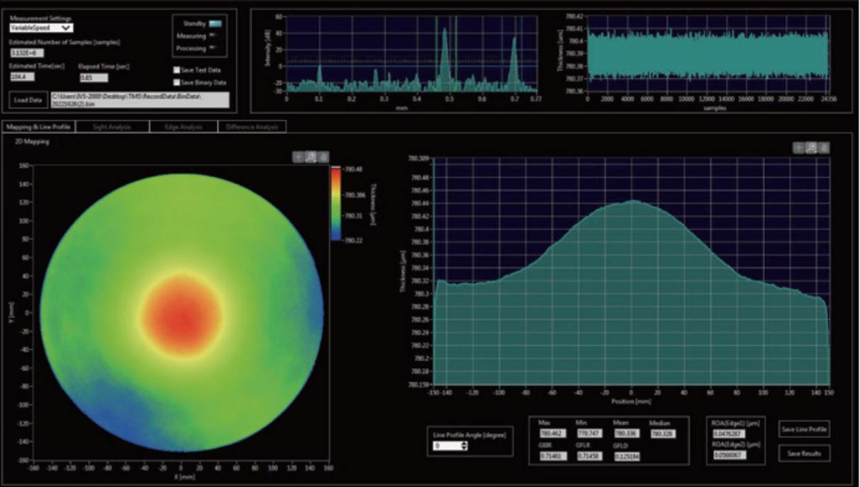 高通量晶圆测厚系统,全新采用的第三代可调谐扫频激光技术,相比传统上下双探头对射扫描方式;可一次性测量所有平面度及厚度参数。
