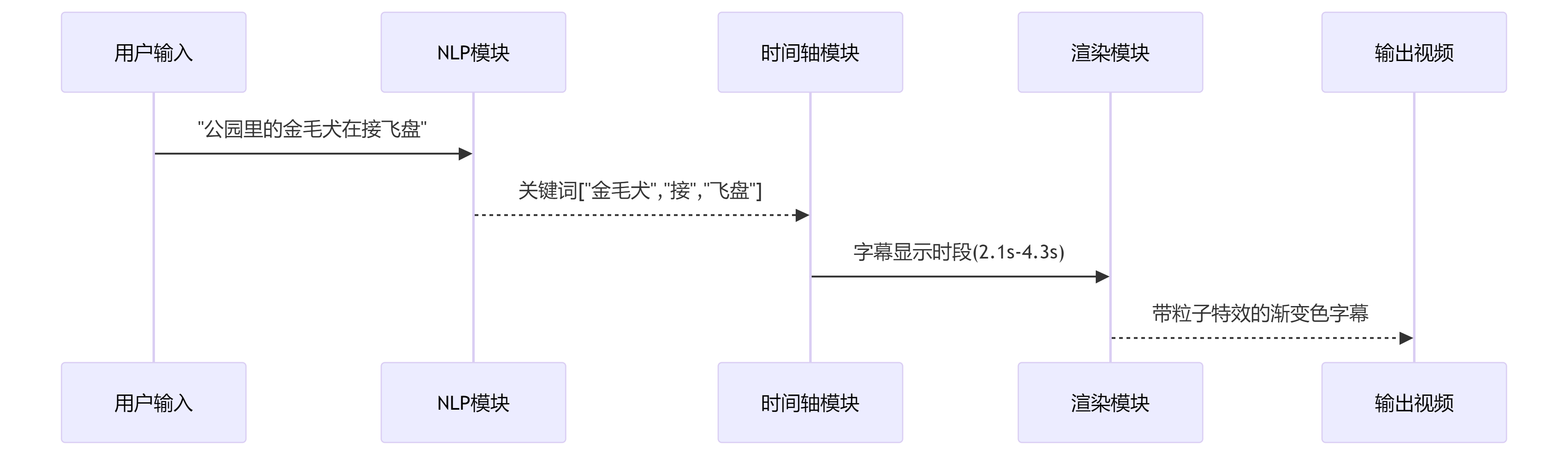 渲染模块-->>输出视频: 带粒子特效的渐变色字幕通过拆解字幕与标题生成的三个核心技术环节,我们可以发现: